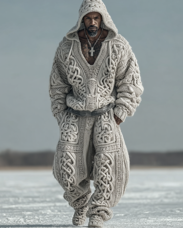 Men's Autumn and Winter Viking Hooded Two Piece Set 2399