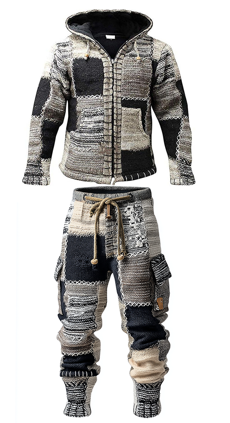 Men's Autumn and Winter Viking Hooded Two Piece Set 8317