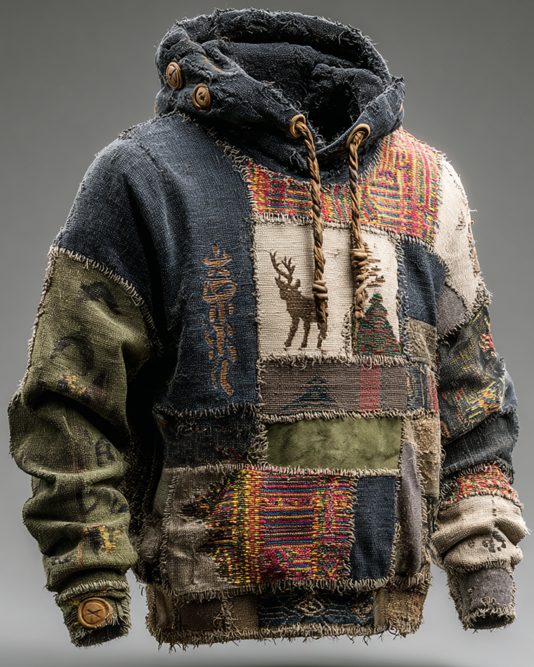Men's Autumn and Winter Fashion Contrast-Color Patchwork Hooded Sweatshirt 6775
