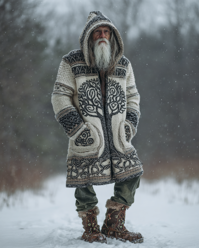 MEN'S AUTUMN AND WINTER FASHION VIKING STYLE KNITTED HOODED JACKET 8317