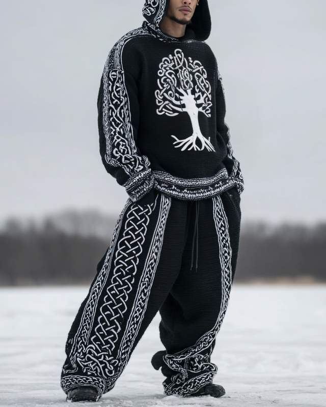 Men's Autumn and Winter Viking Hooded Two Piece Set 8008