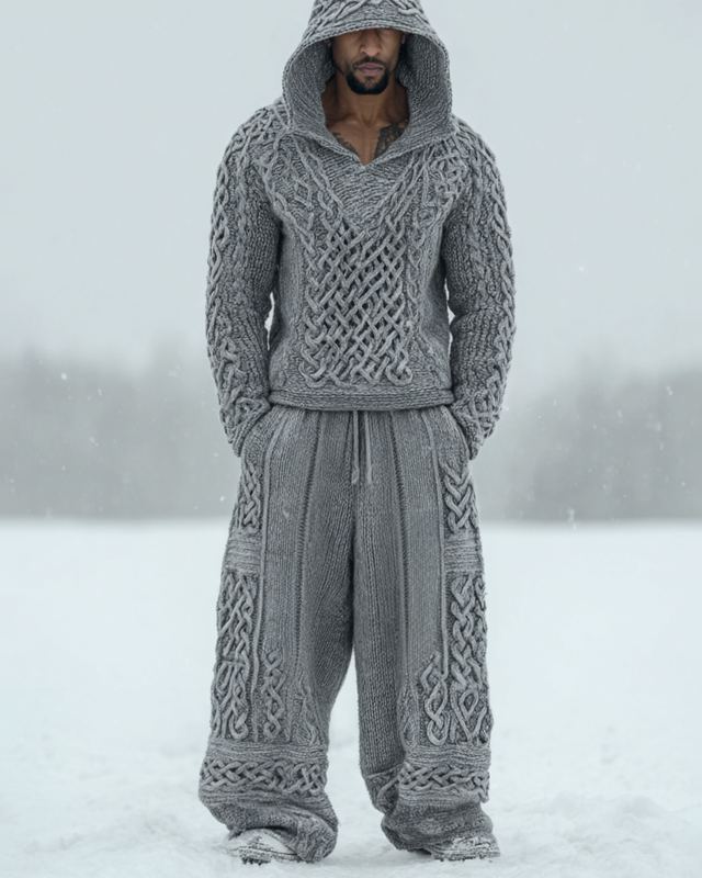 Men's Autumn and Winter Viking Hooded Two Piece Set 8317