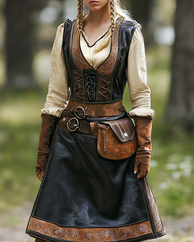 Women's Nordic Viking Art Comfort Leather Stitching Dress 8263